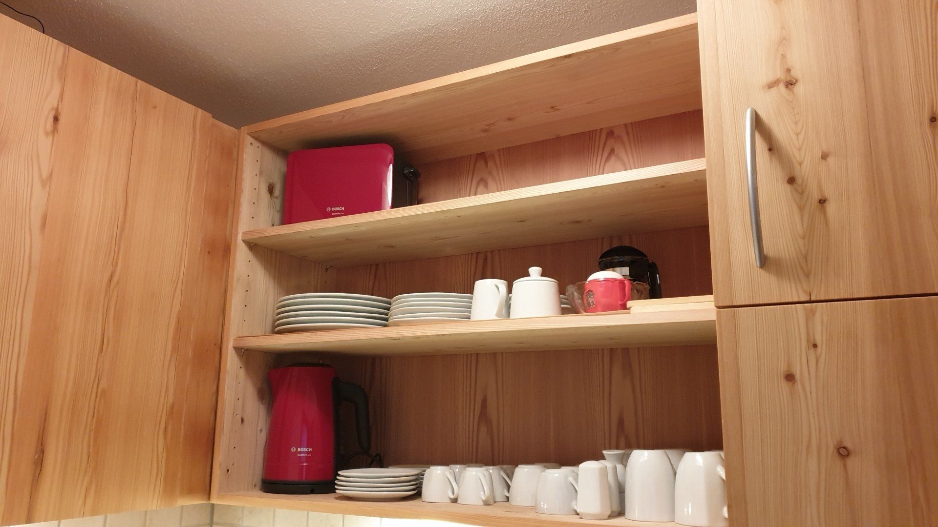 - Küchengeräte wie Wasserkocher, Mixer, Kaffeemaschine, Eierkocher, Toaster