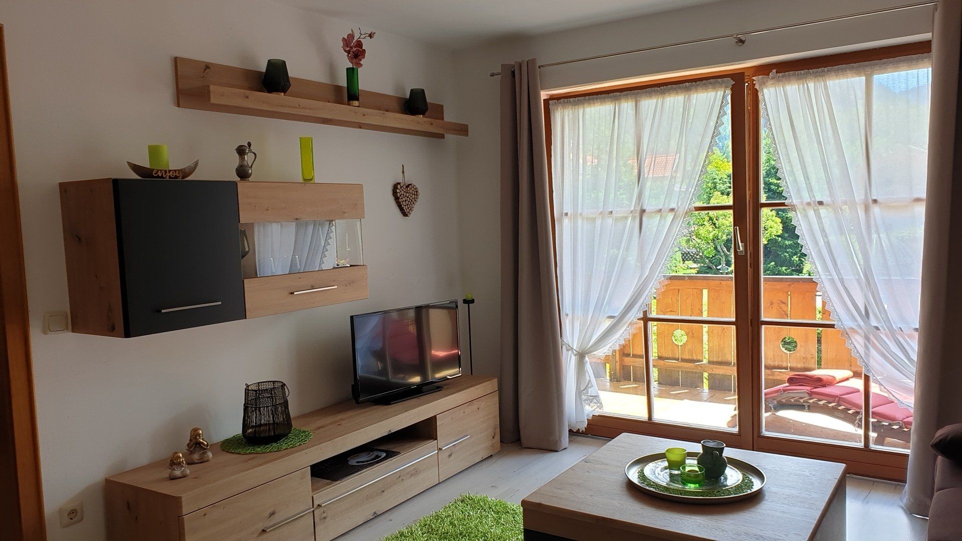 hat eine Größe von 43 m² und bietet Platz für 2 Personen. Zusätzlich 14 m² überdachter Balkon mit Blick auf die Berge. Unsere Ferienwohnung wurde 2021 neu renoviert. Sehr ruhig und zentrumsnah gelegen.