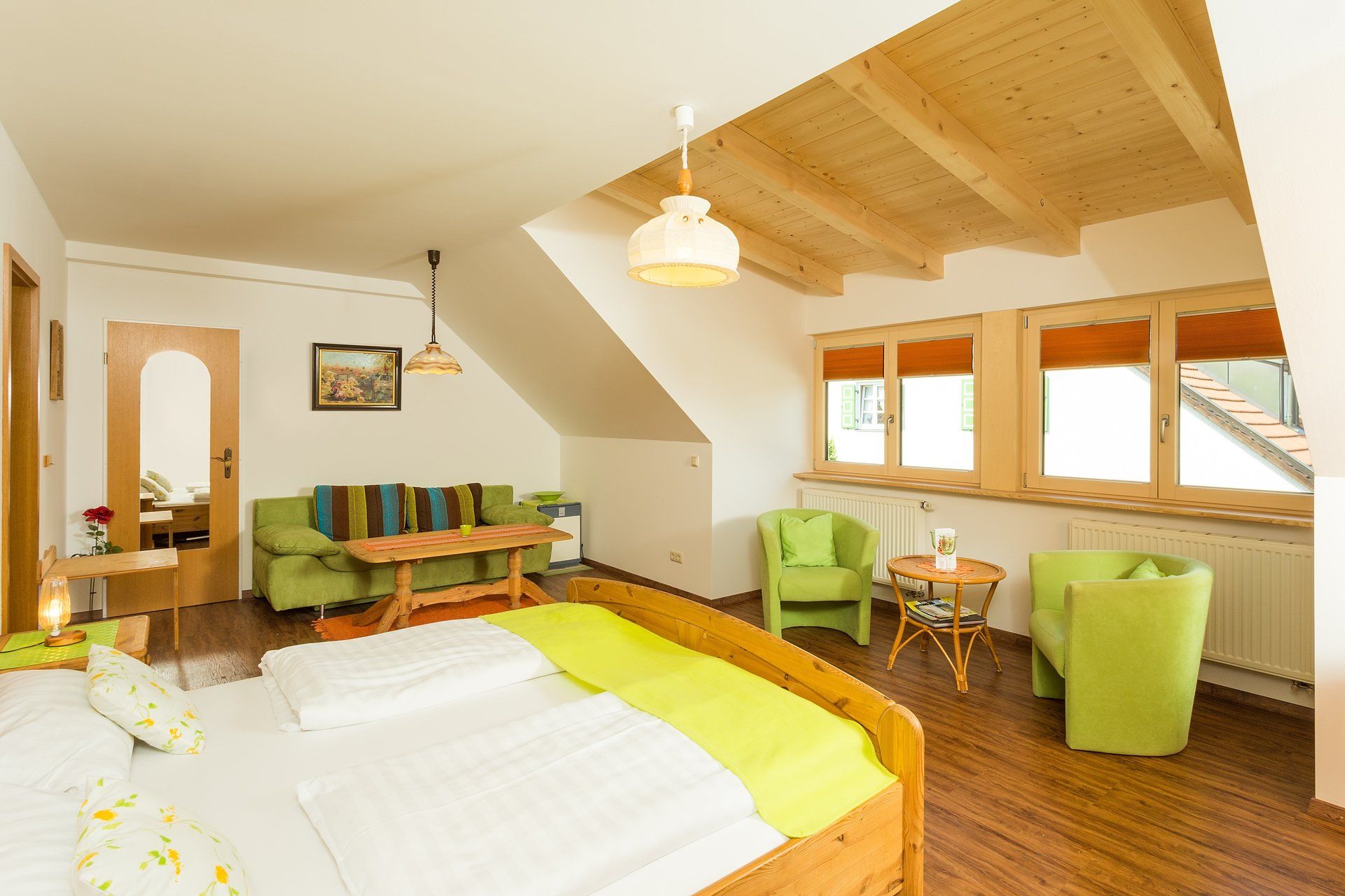 Das Zimmer hat einen Balkon mit Blick auf den "Aufacker", erleben sie unseren Sonnenuntergang.